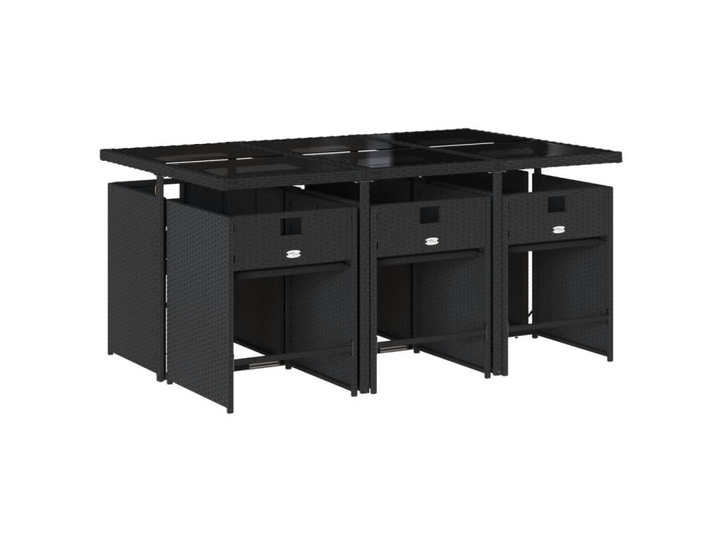 7dílný zahradní jídelní set s poduškami černý polyratan 3211086