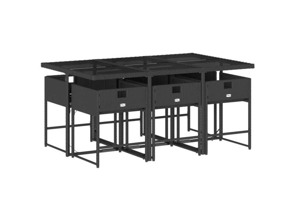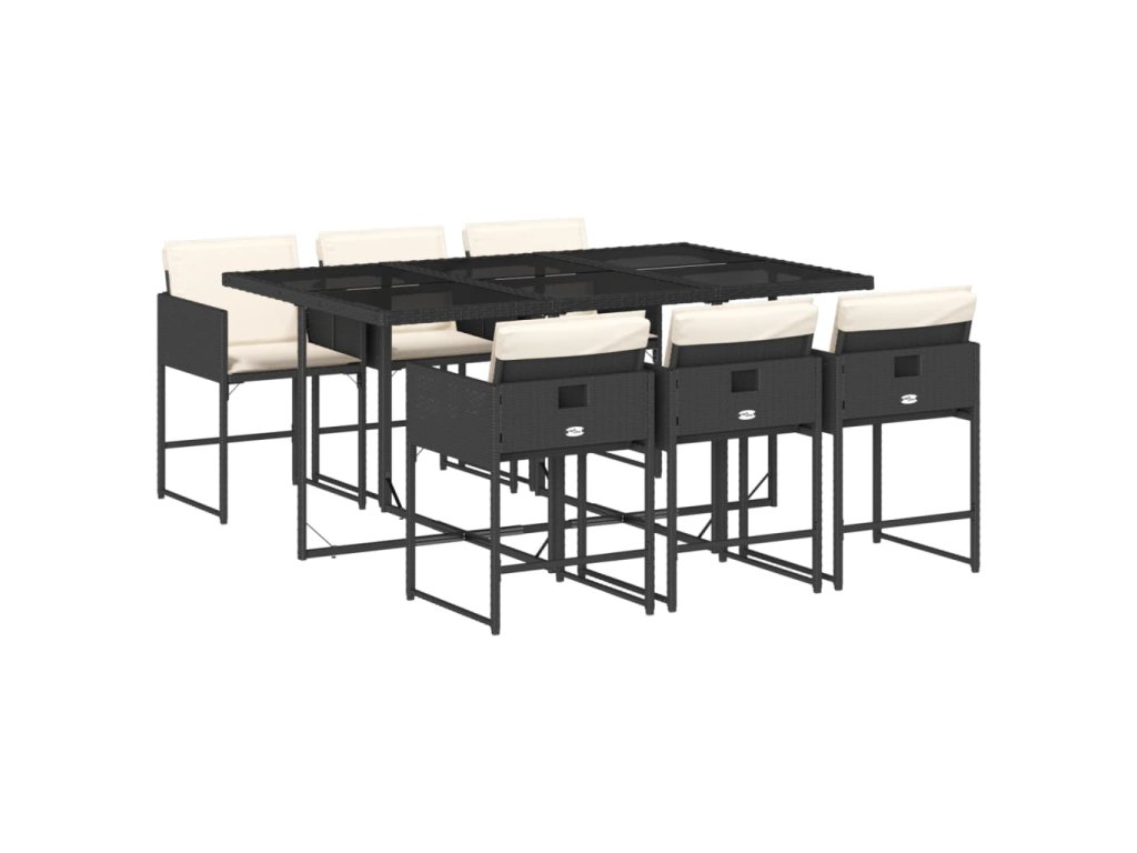 7dílný zahradní jídelní set s poduškami černý polyratan 3211266