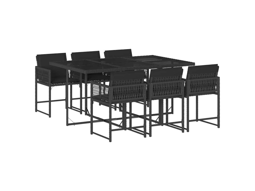 7dílný zahradní jídelní set s poduškami černý polyratan 3211447