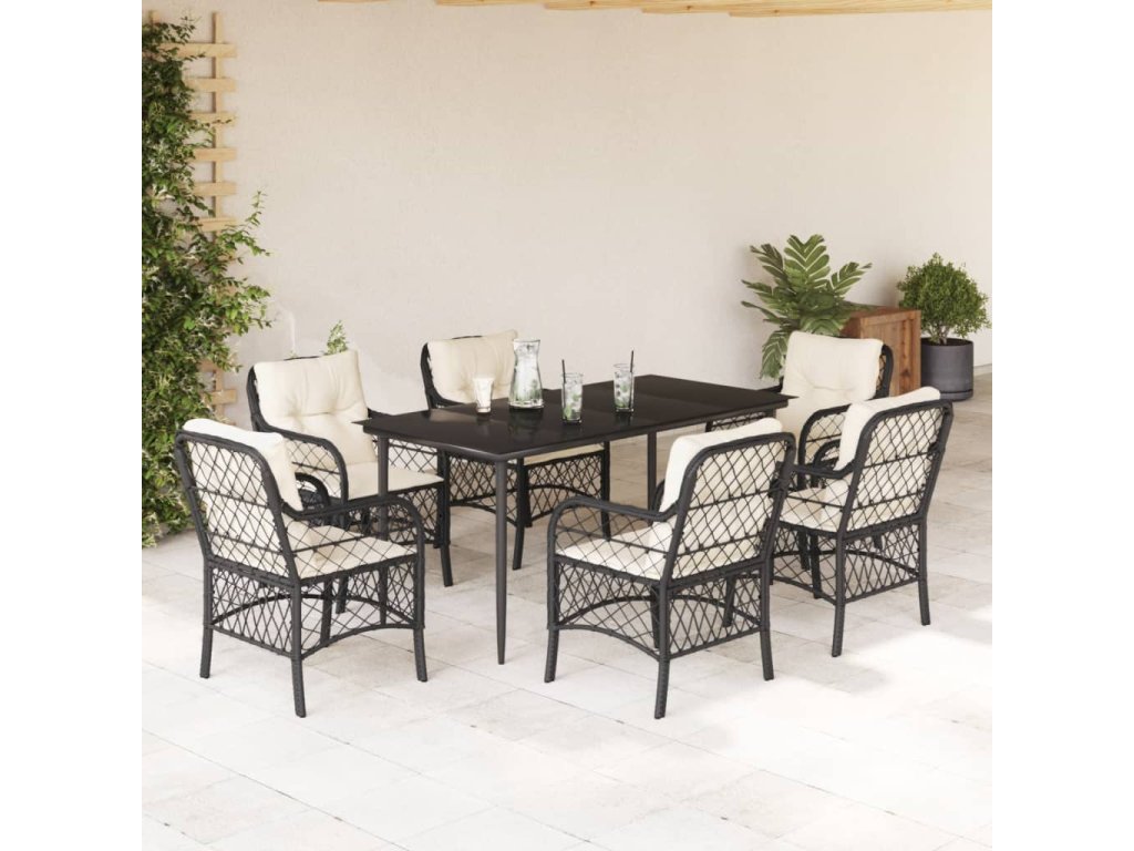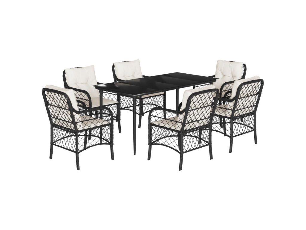 7dílný zahradní jídelní set s poduškami černý polyratan 3212086