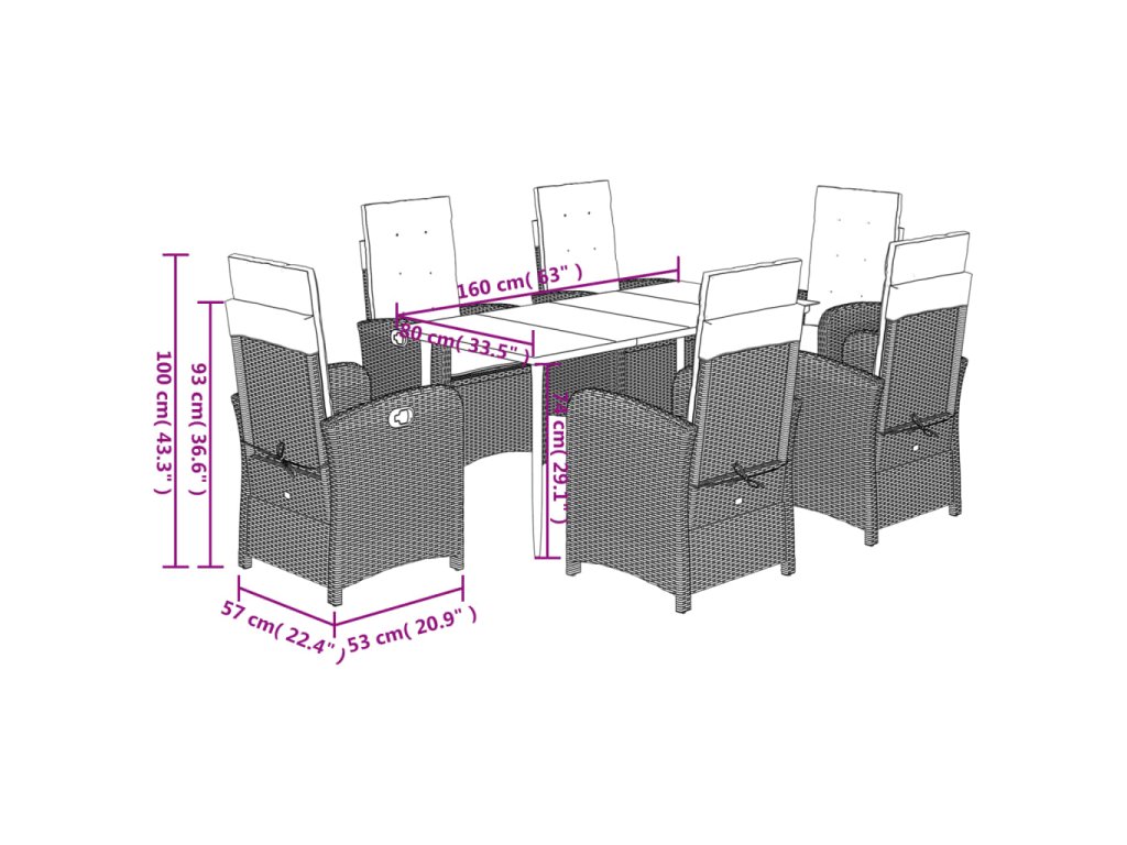 7dílný zahradní jídelní set s poduškami černý polyratan 3212296