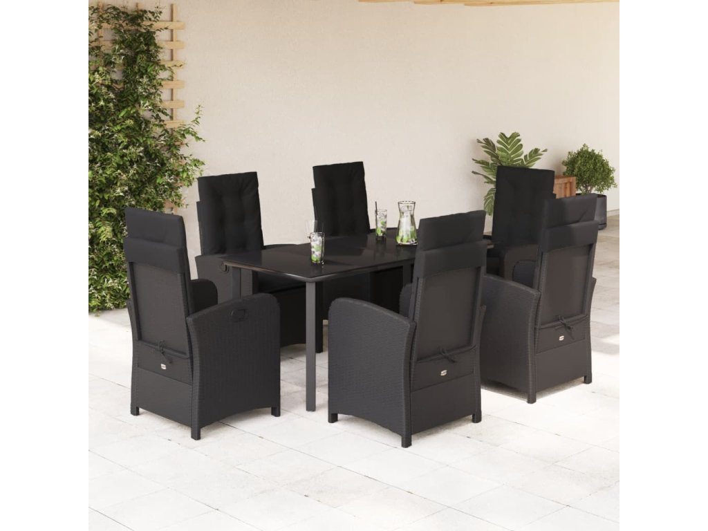7dílný zahradní jídelní set s poduškami černý polyratan 3212326