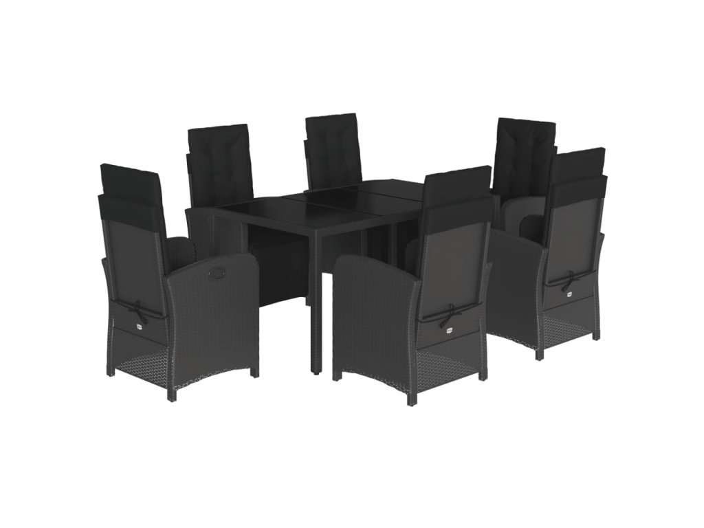 7dílný zahradní jídelní set s poduškami černý polyratan 3212459