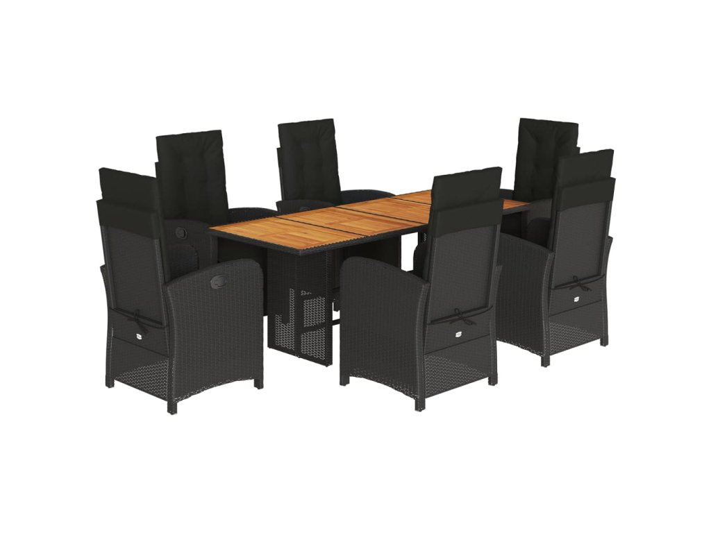 7dílný zahradní jídelní set s poduškami černý polyratan 3212504