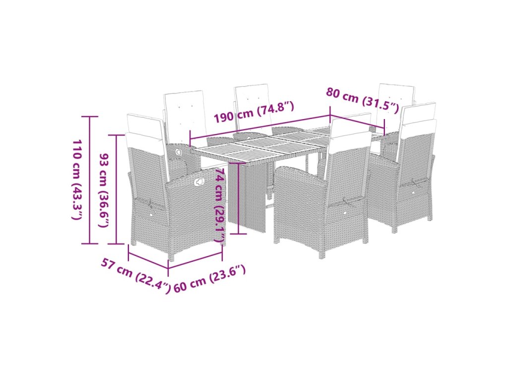 - Rozměry: 190 x 80 x 74 cm (D x Š x V)