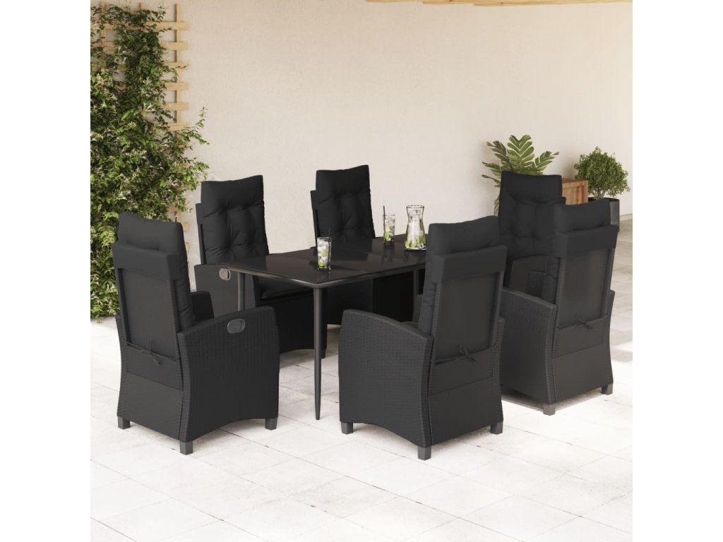 7dílný zahradní jídelní set s poduškami černý polyratan 3212747