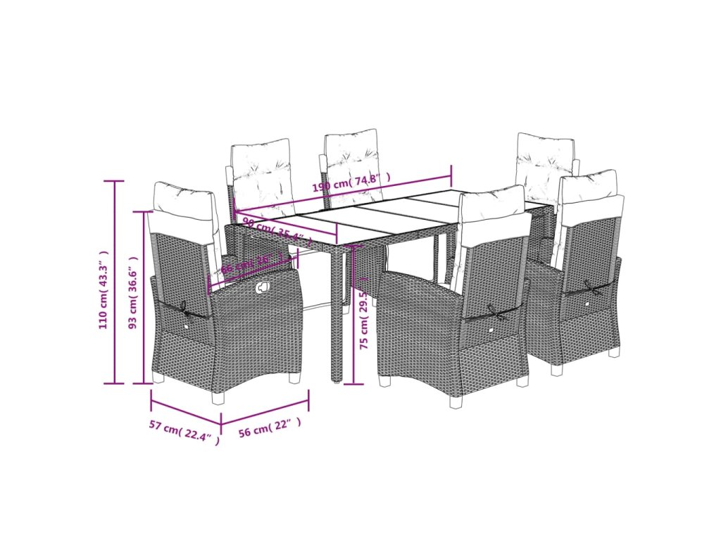 7dílný zahradní jídelní set s poduškami černý polyratan 3212892