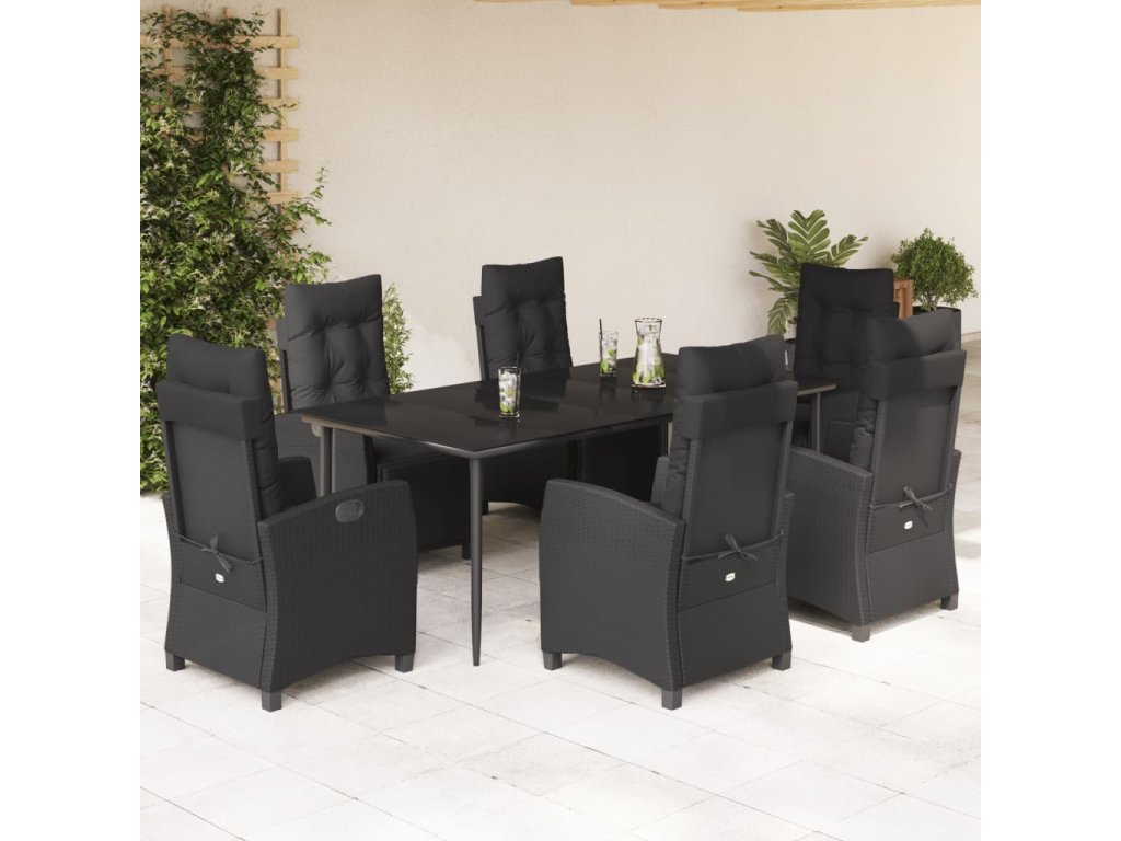 7dílný zahradní jídelní set s poduškami černý polyratan 3212965