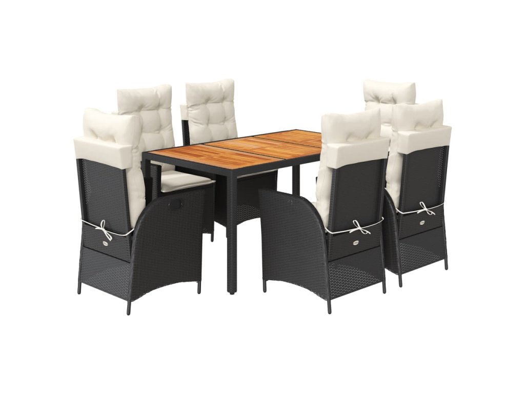 7dílný zahradní jídelní set s poduškami černý polyratan 3213090