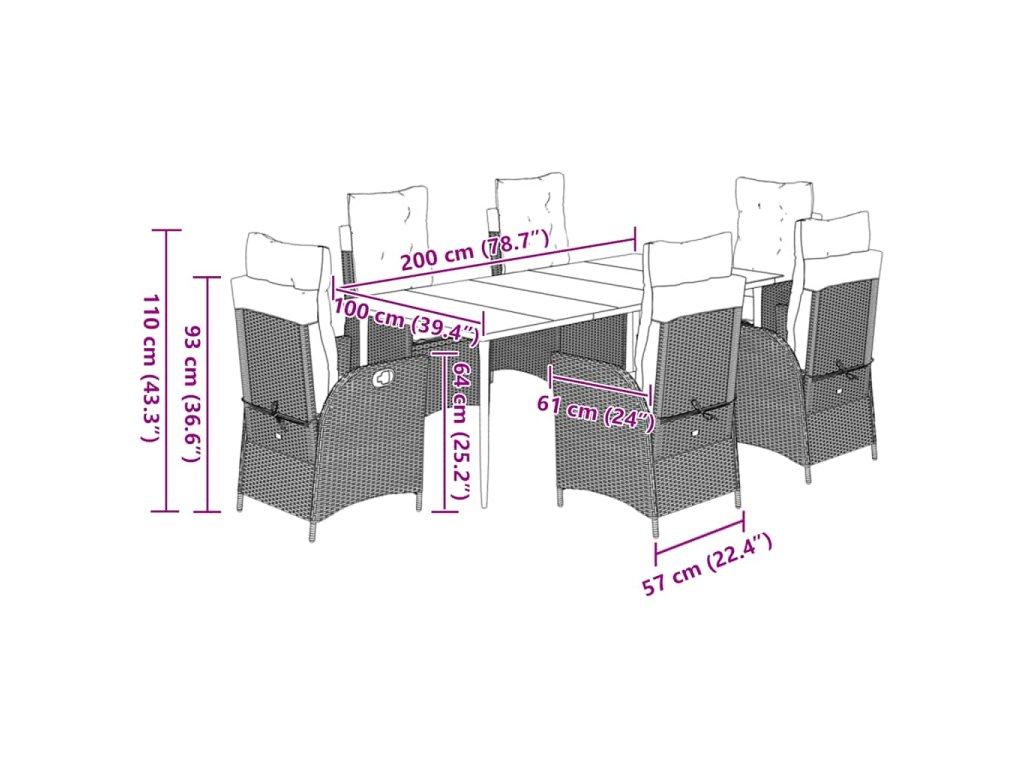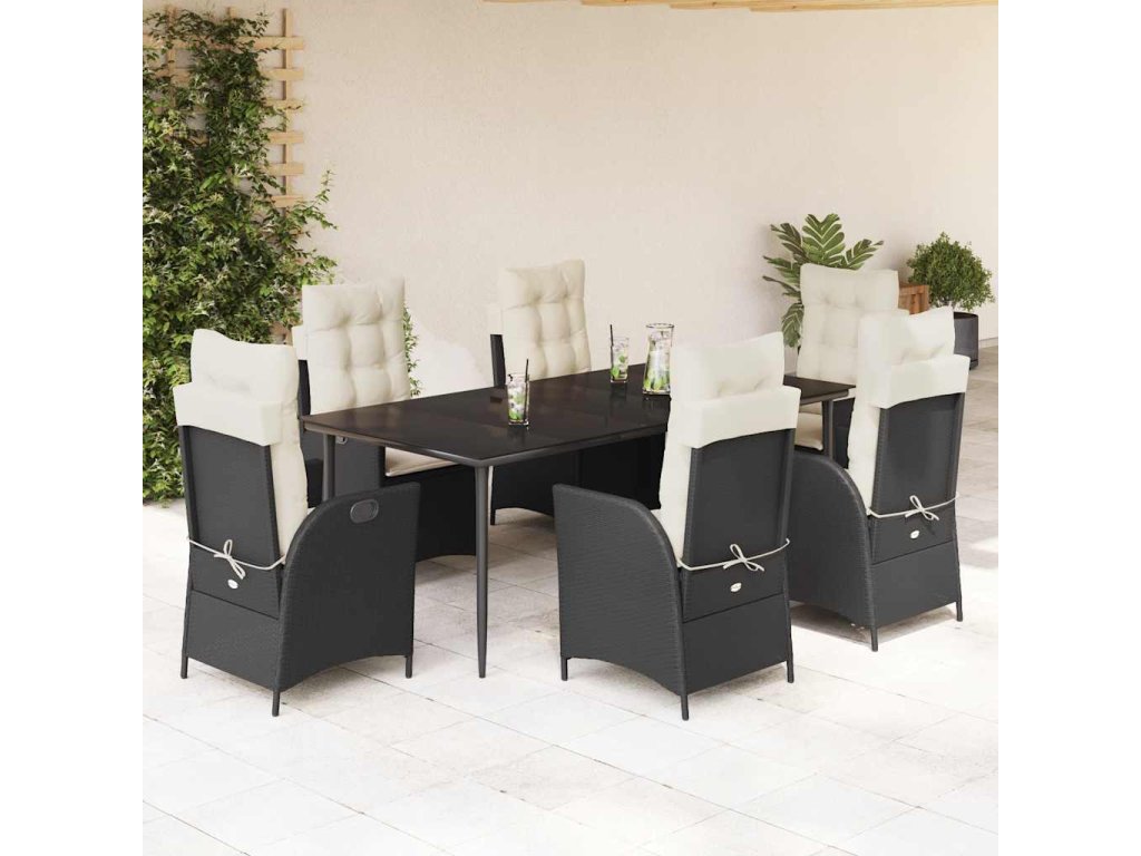 7dílný zahradní jídelní set s poduškami černý polyratan 3213161