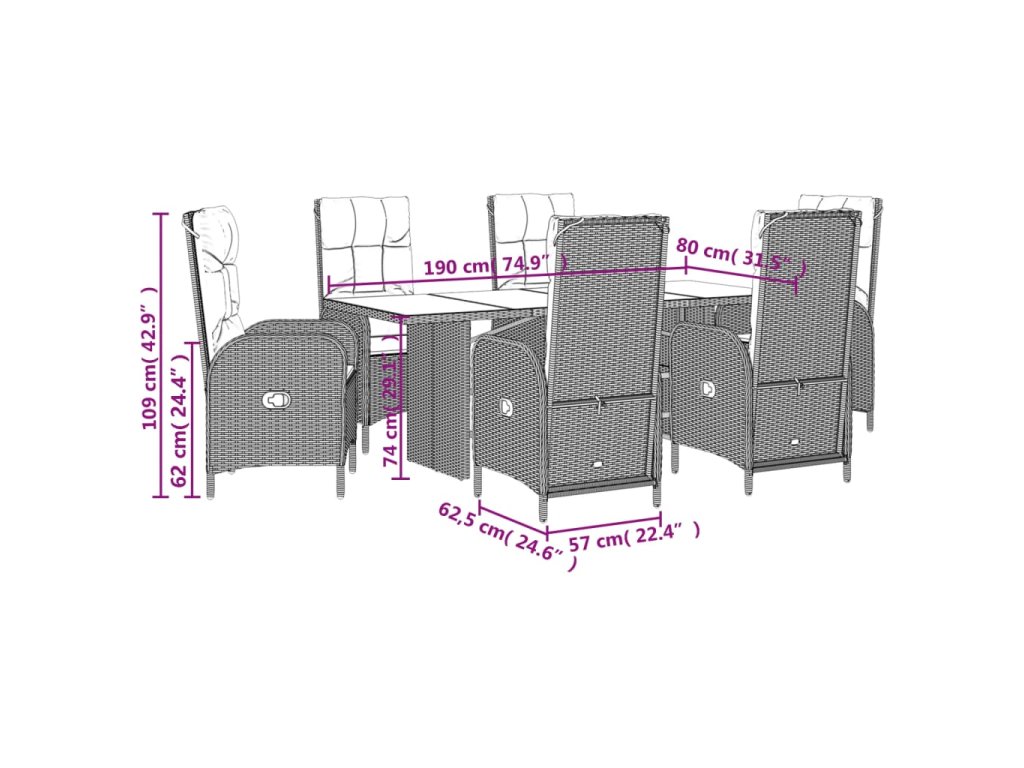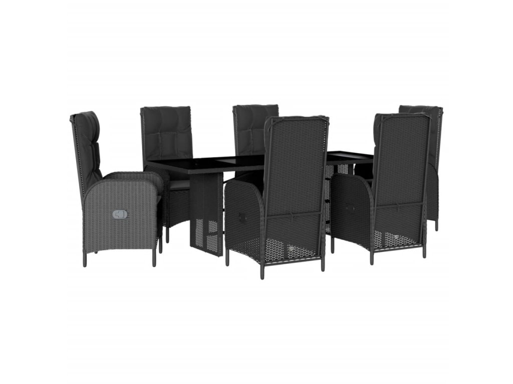 7dílný zahradní jídelní set s poduškami černý polyratan 3213524