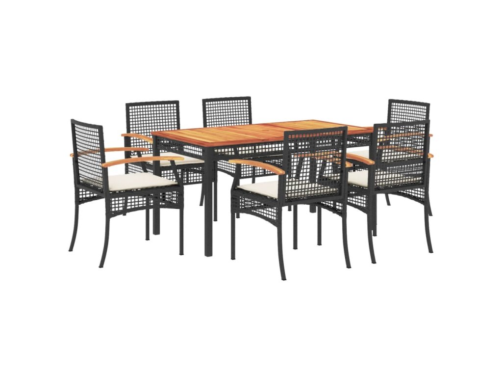 7dílný zahradní jídelní set s poduškami černý polyratan 3213563