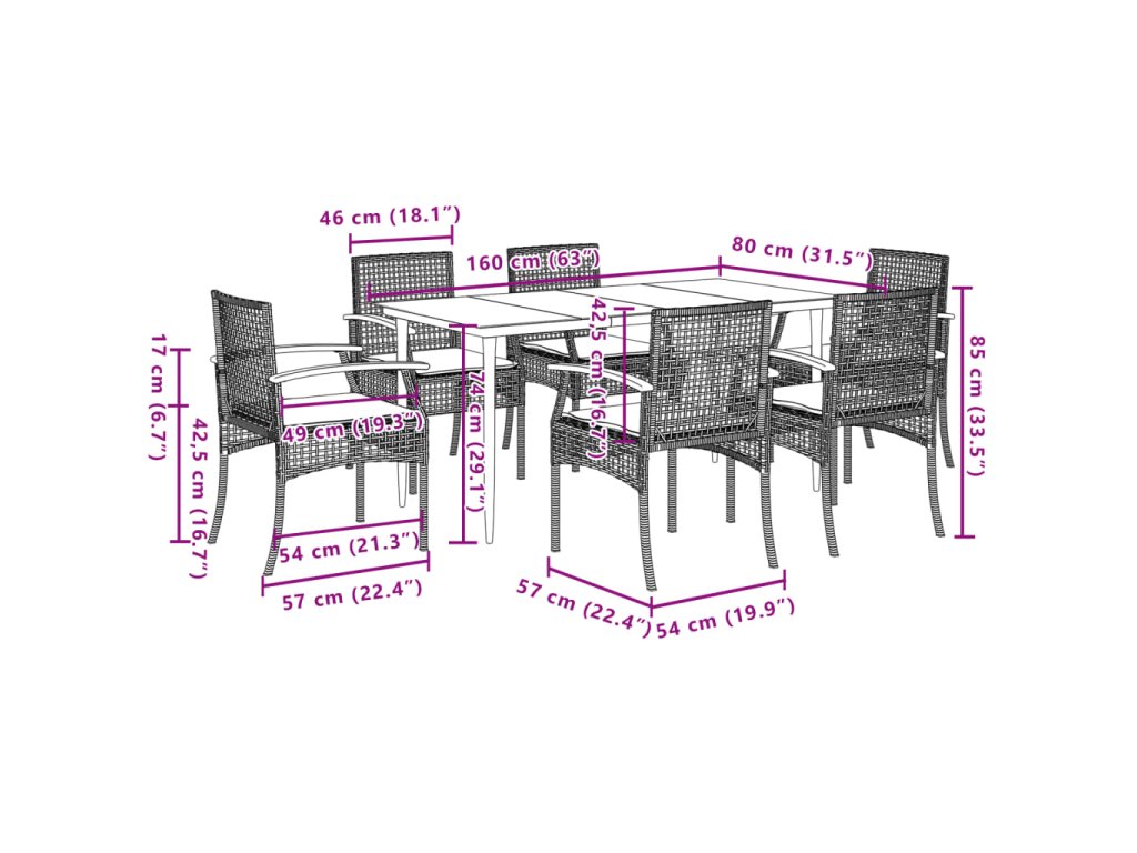 7dílný zahradní jídelní set s poduškami černý polyratan 3213600