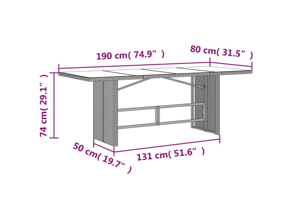 - Skleněná deska stolu: Deska venkovního stolu je zhotovena ze silného a odolného tvrzeného skla, takže ji snadno očistíte vlhkým hadříkem a zároveň do vašeho venkovního prostoru vnese nádech elegance.