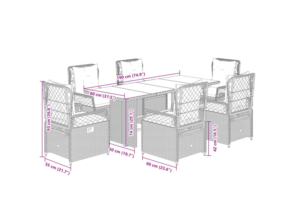 - Rozměry: 190 x 80 x 74 cm (D x Š x V)