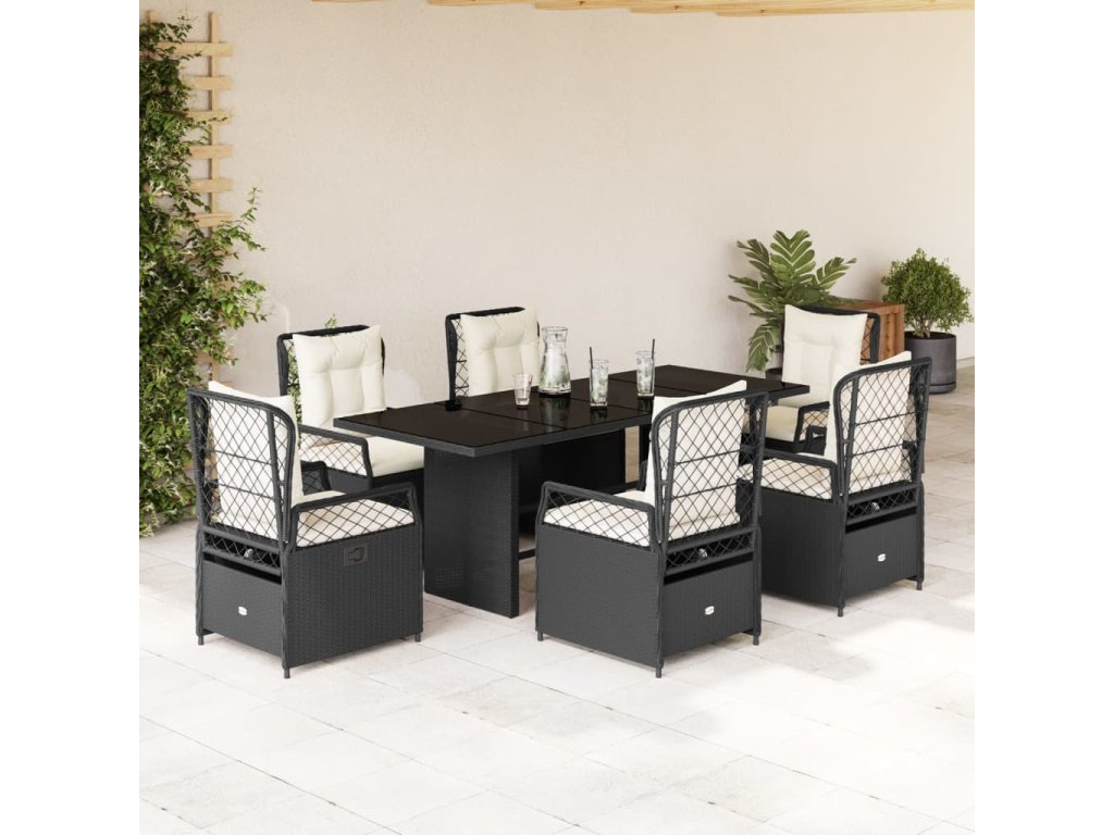 7dílný zahradní jídelní set s poduškami černý polyratan 3262922