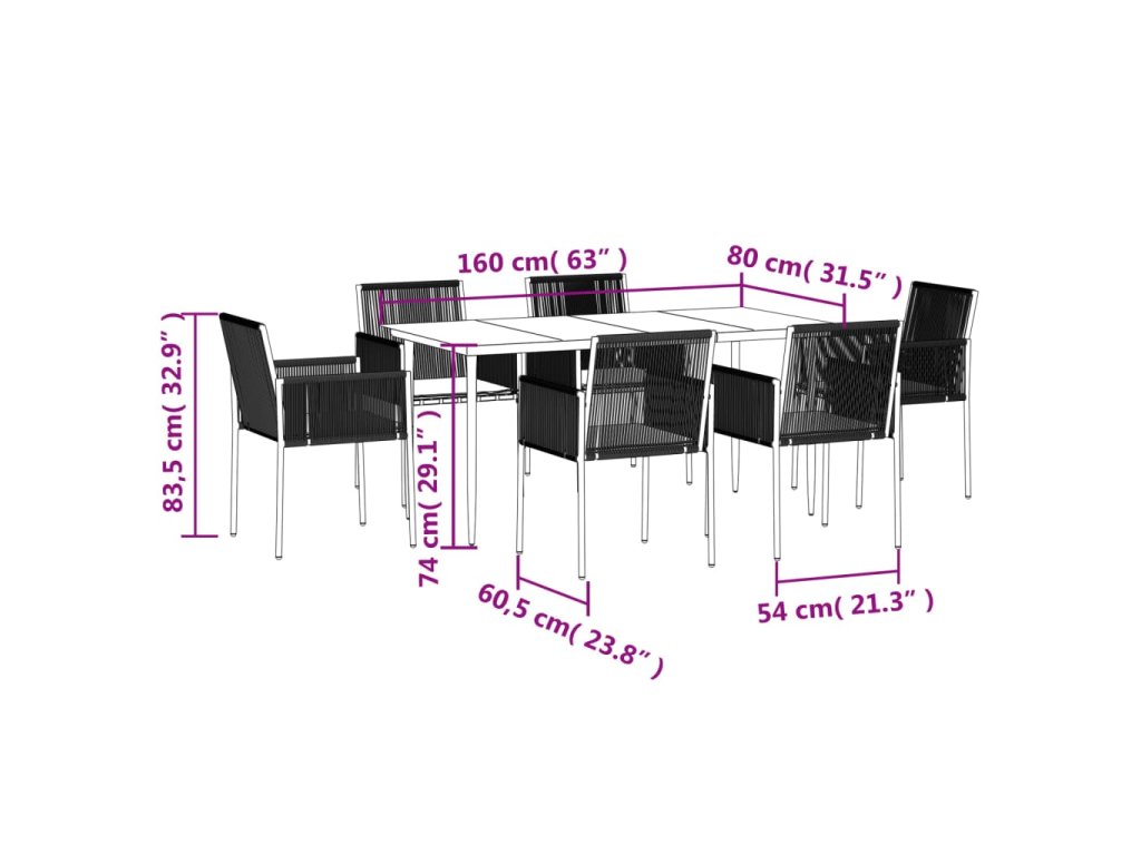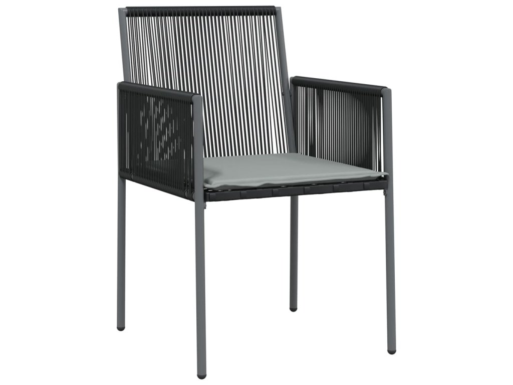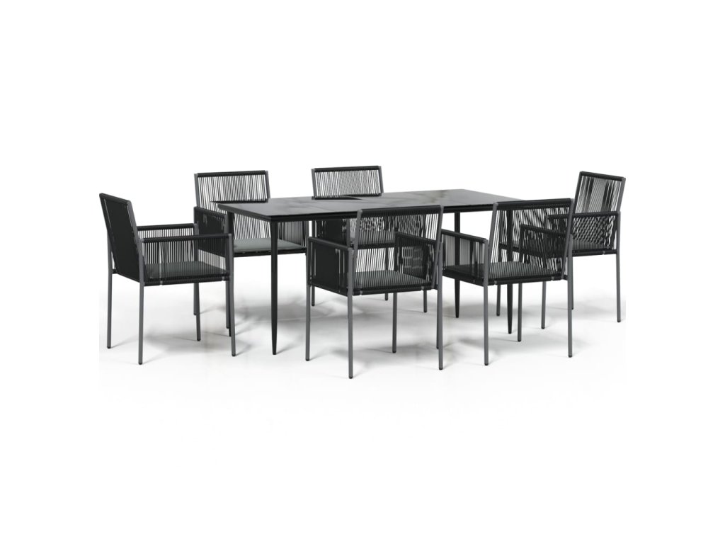 7dílný zahradní jídelní set s poduškami černý polyratan a ocel 3187070
