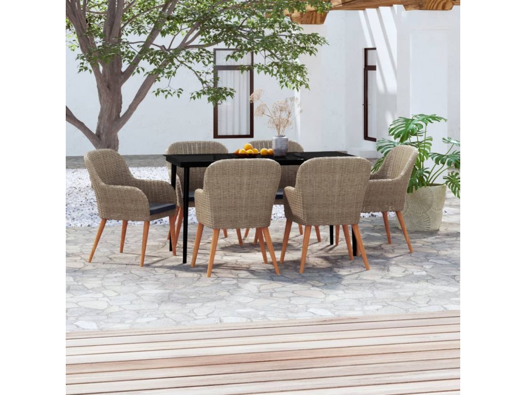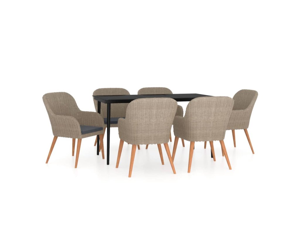 7dílný zahradní jídelní set s poduškami hnědý 3099526