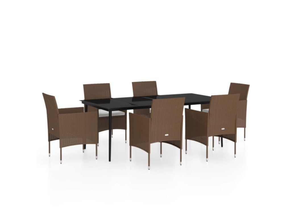 7dílný zahradní jídelní set s poduškami hnědý a černý 3099327