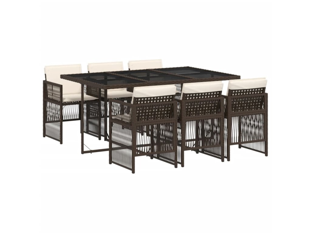 7dílný zahradní jídelní set s poduškami hnědý polyratan 3210909