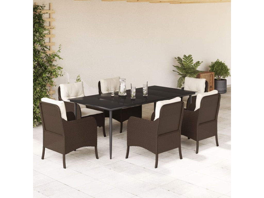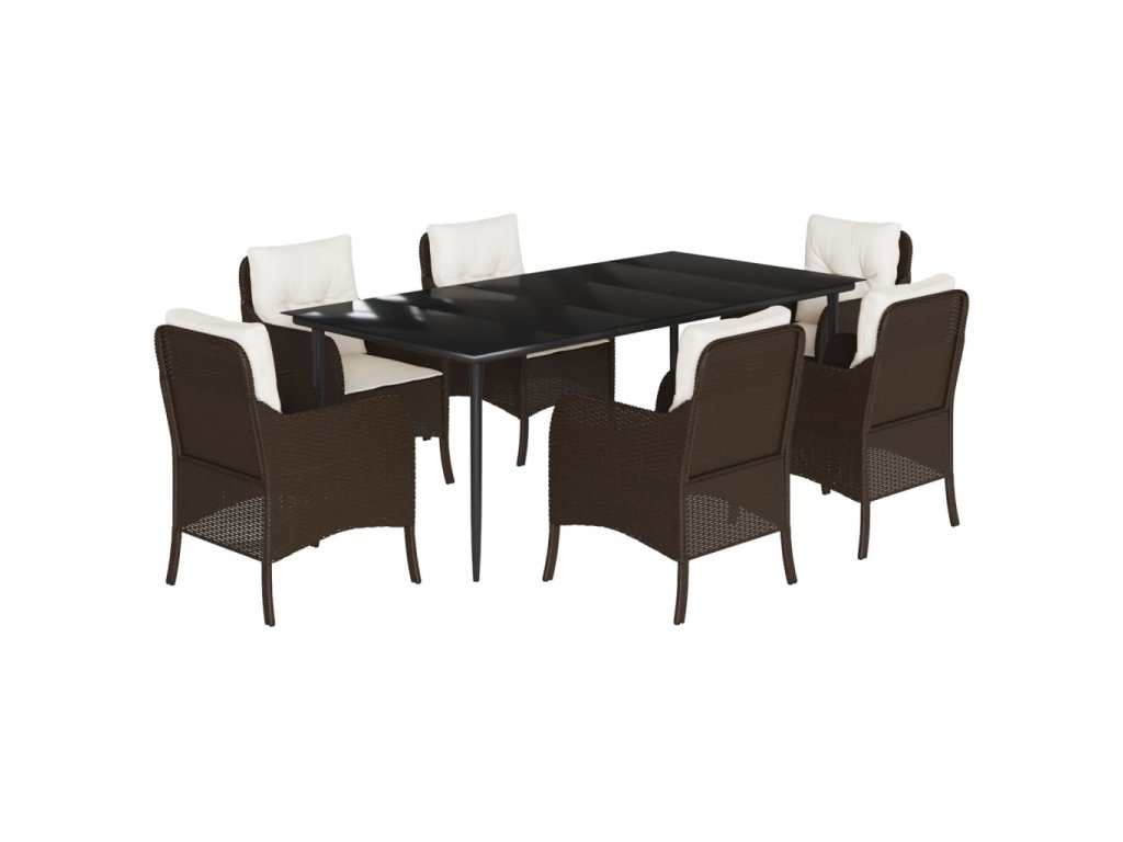 7dílný zahradní jídelní set s poduškami hnědý polyratan 3211939