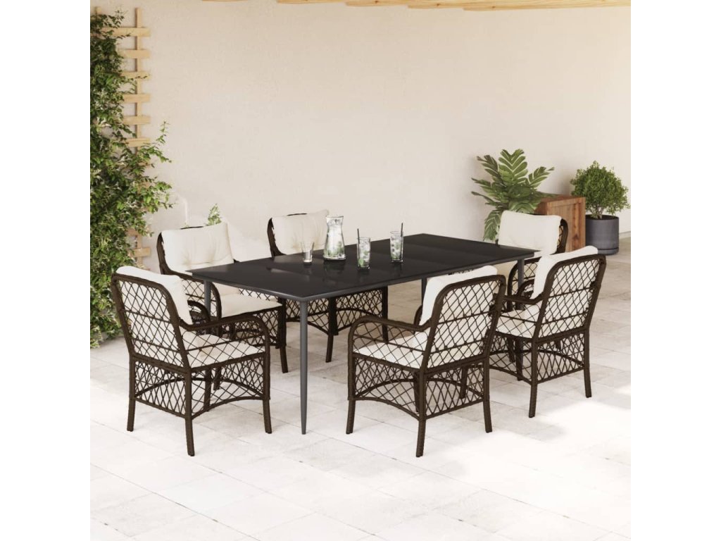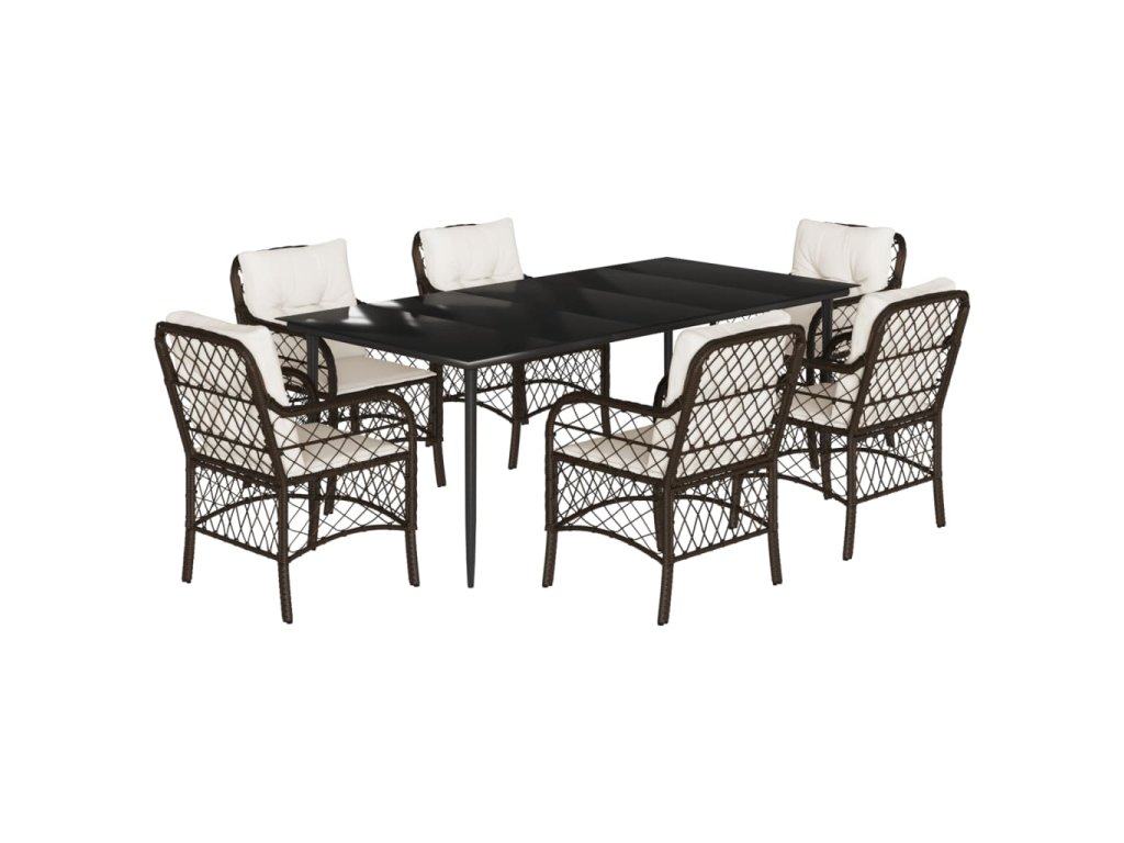 7dílný zahradní jídelní set s poduškami hnědý polyratan 3212115