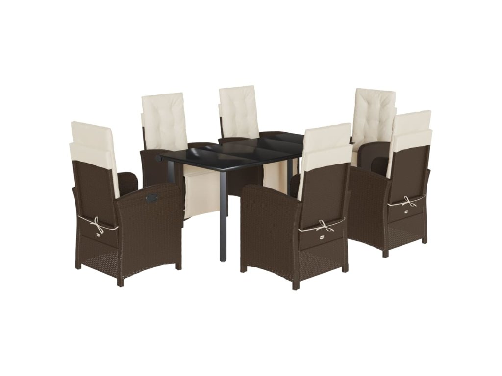 7dílný zahradní jídelní set s poduškami hnědý polyratan 3212553
