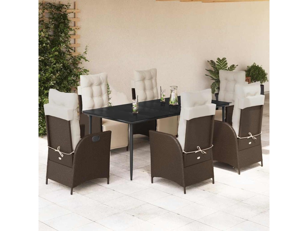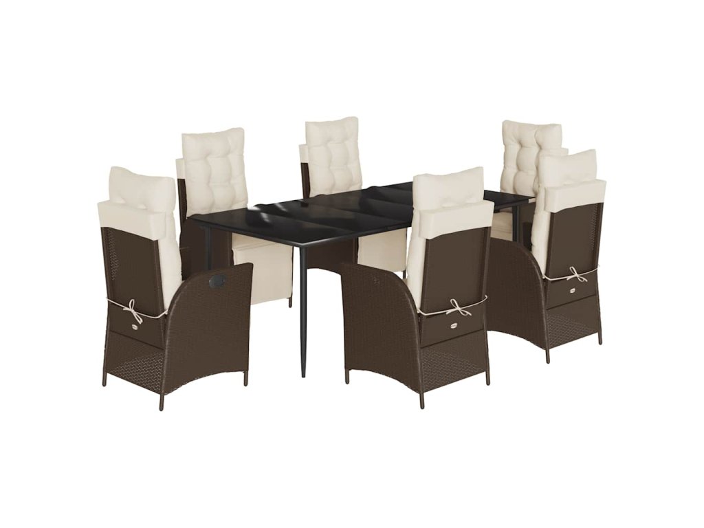 7dílný zahradní jídelní set s poduškami hnědý polyratan 3213411