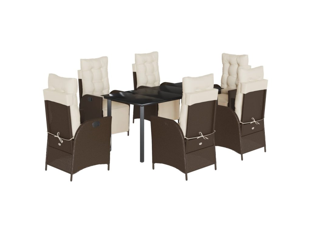 7dílný zahradní jídelní set s poduškami hnědý polyratan 3213417