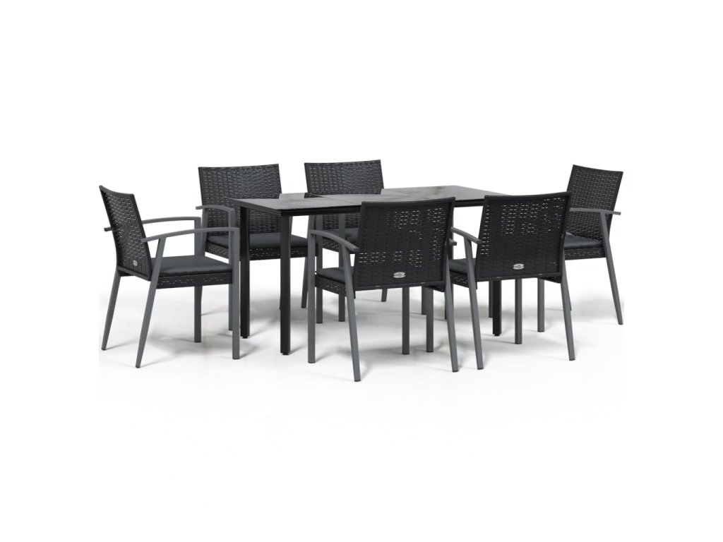 7dílný zahradní jídelní set s poduškami polyratan a ocel 3186992