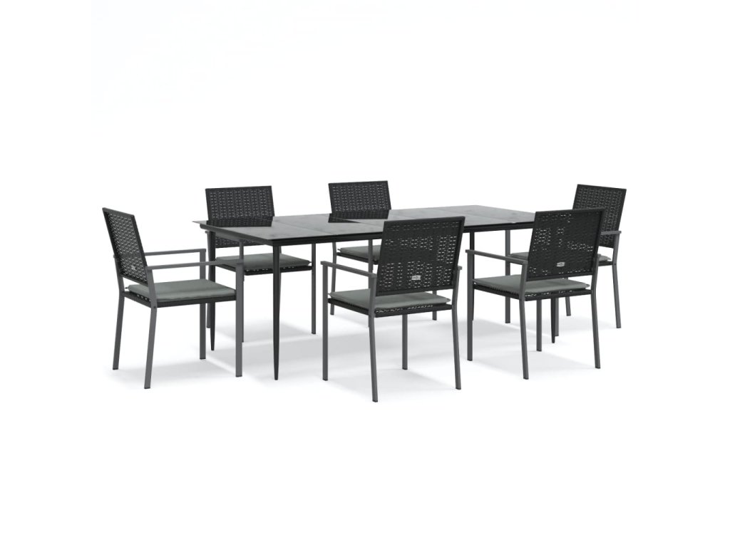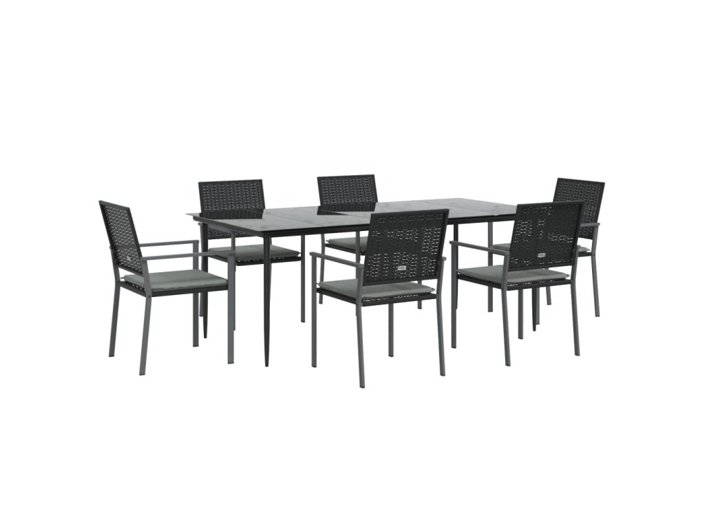 7dílný zahradní jídelní set s poduškami polyratan a ocel 3187013