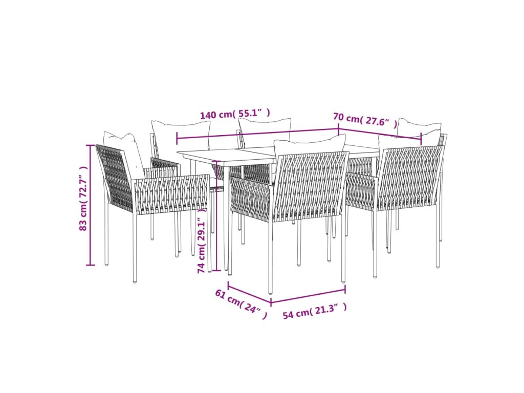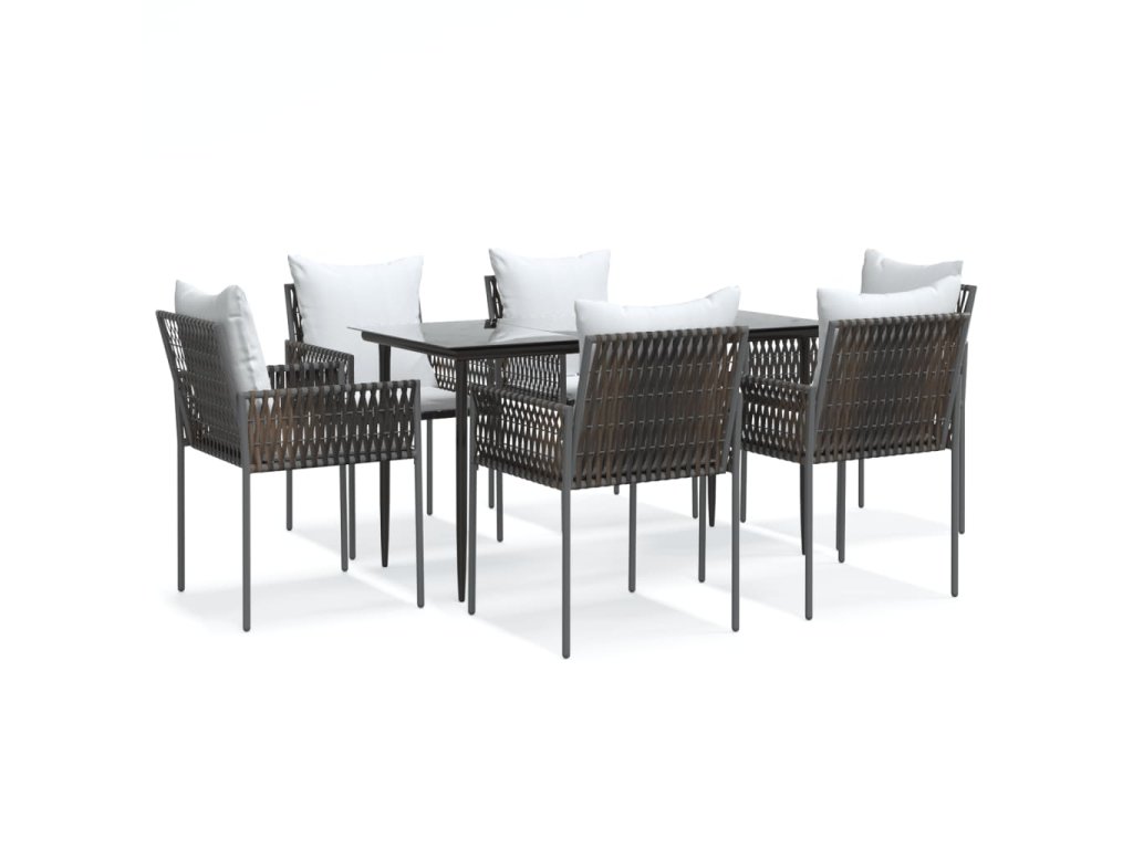 7dílný zahradní jídelní set s poduškami polyratan a ocel 3187054