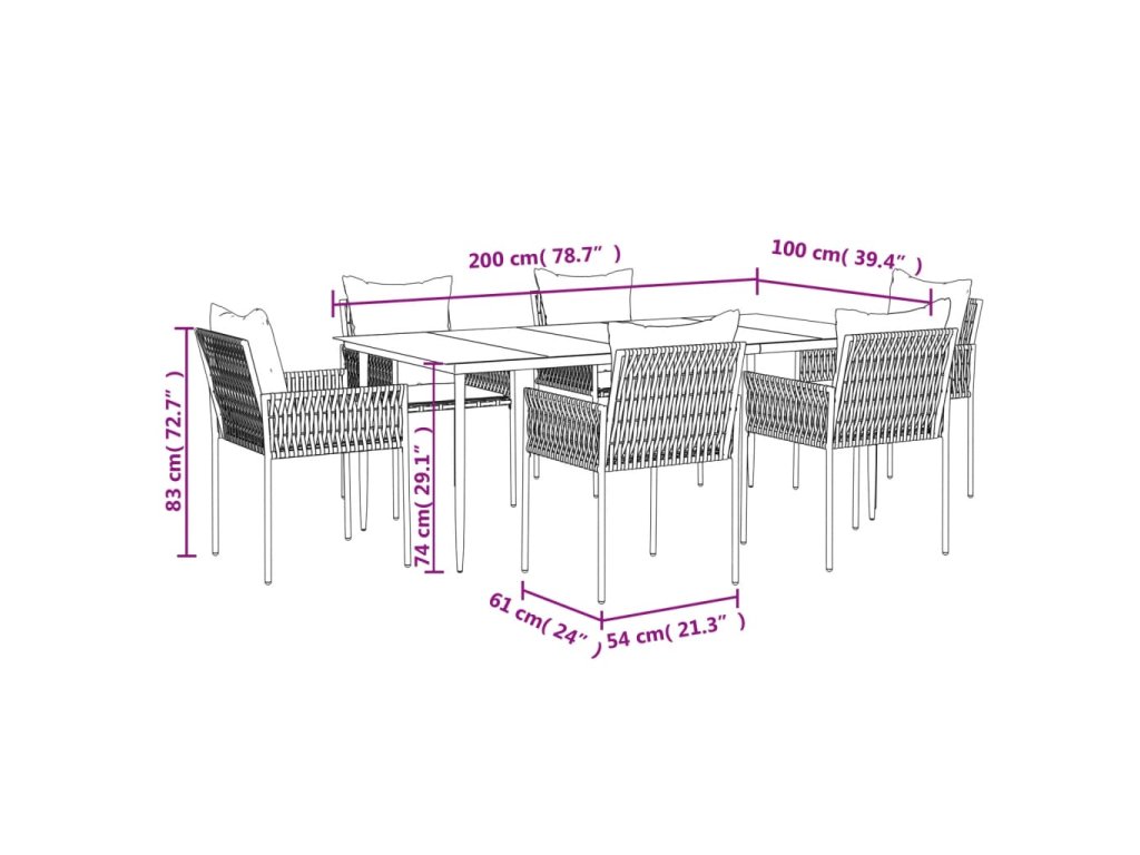 7dílný zahradní jídelní set s poduškami polyratan a ocel 3187061