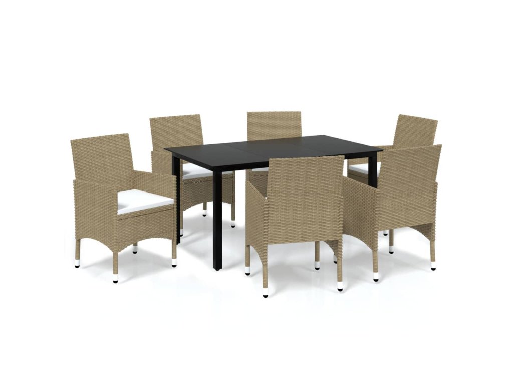 7dílný zahradní jídelní set s poduškami polyratan béžový 3094988
