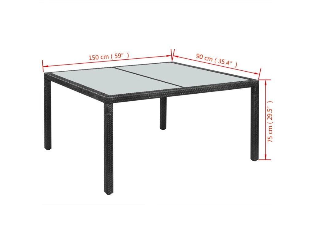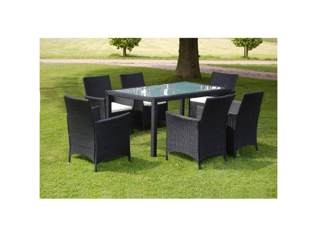 - Balení obsahuje 1 stůl se skleněnou deskou, 6 ratanových židlí a 6 odnímatelných polstrů na sedáky