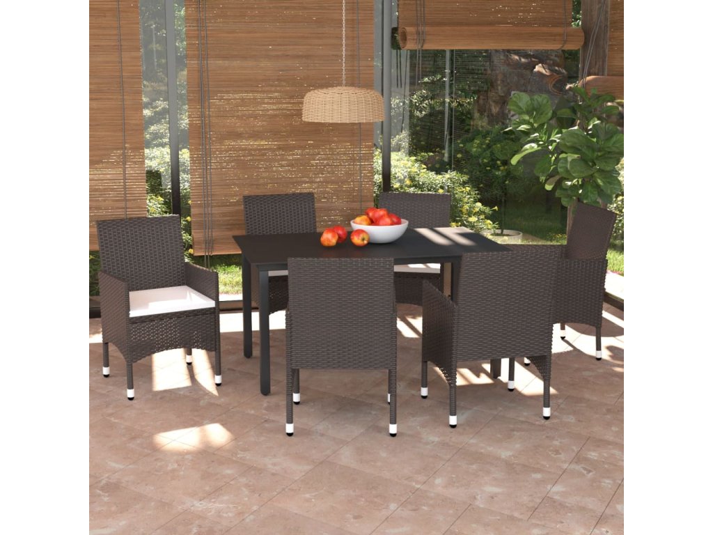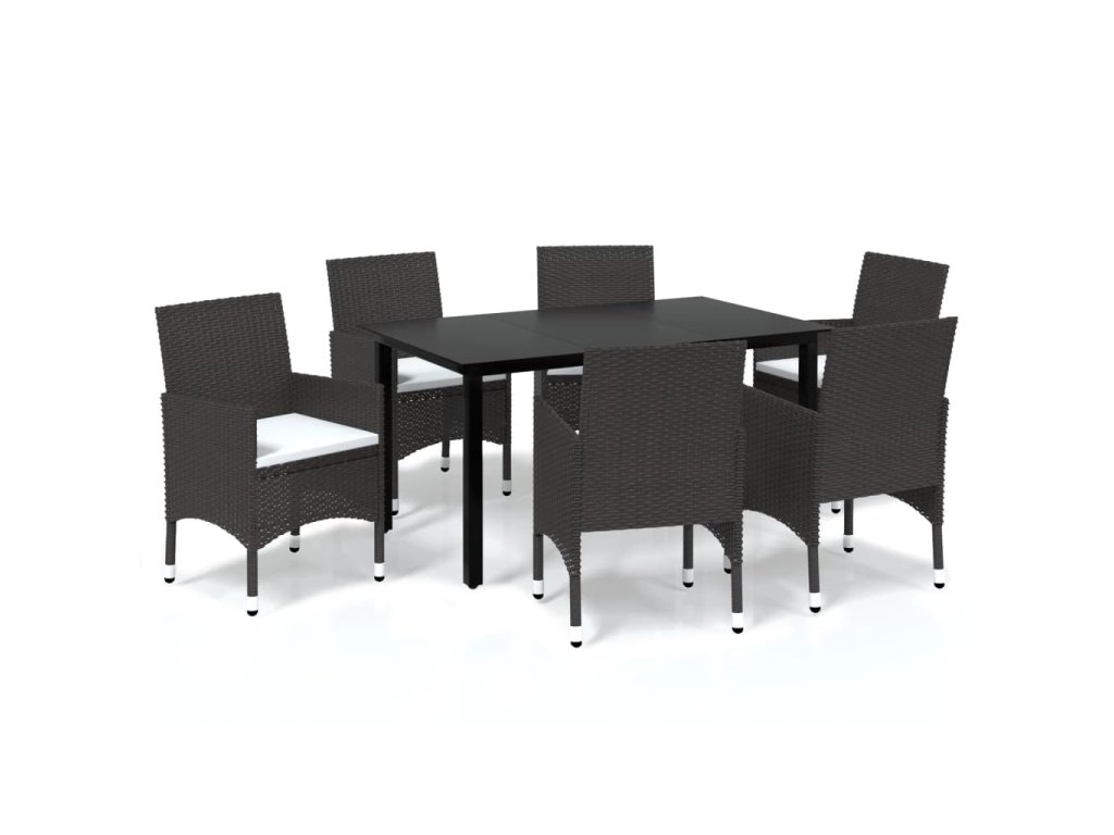 7dílný zahradní jídelní set s poduškami polyratan hnědý 3094994