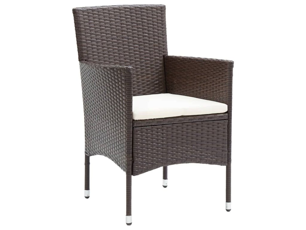 Zahradní židle jsou zhotoveny z robustního ocelového rámu proplétaného PE ratanem, který skvěle vzdoruje povětrnostním vlivům, takže jsou odolné vůči rzi a plísním a poskytnou vám dlouhá léta kvalitní relaxace. Zahradní stůl má skleněnou desku s jednoduchými liniemi, která se snadno čistí a skvěle se hodí pro venkovní použití. Hliníkový rám navíc zajišťuje stabilitu a pevnost. Hustě polstrované podušky vám poskytnou maximální pohodlí při sezení. Tento terasový jídelní set se vyznačuje lehkou konstrukcí, takže se dá snadno přesouvat z místa na místo.