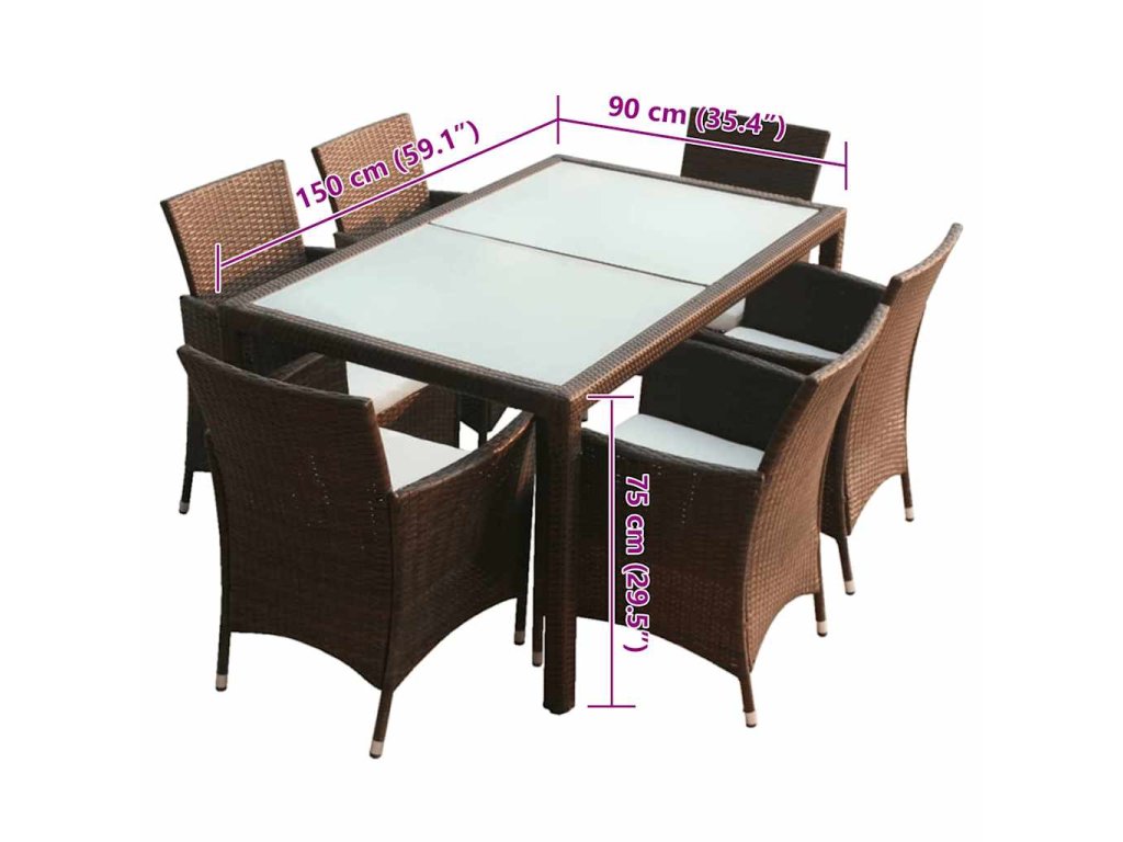 7dílný zahradní jídelní set s poduškami polyratan hnědý 43119