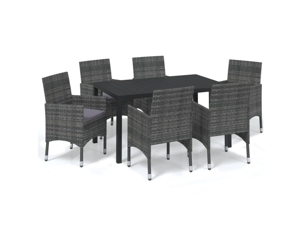 7dílný zahradní jídelní set s poduškami polyratan šedý 3095024