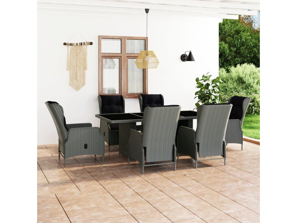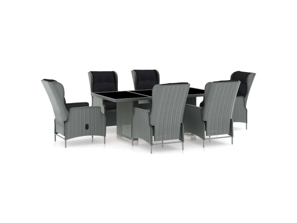 7dílný zahradní jídelní set s poduškami polyratan světle šedý 3060140