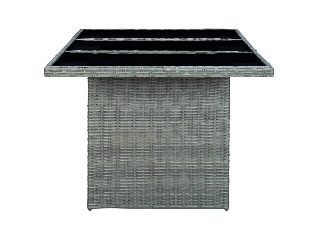 - Materiál: kulatý PE ratan, masivní akáciové dřevo, práškově lakovaná ocel, tvrzené sklo