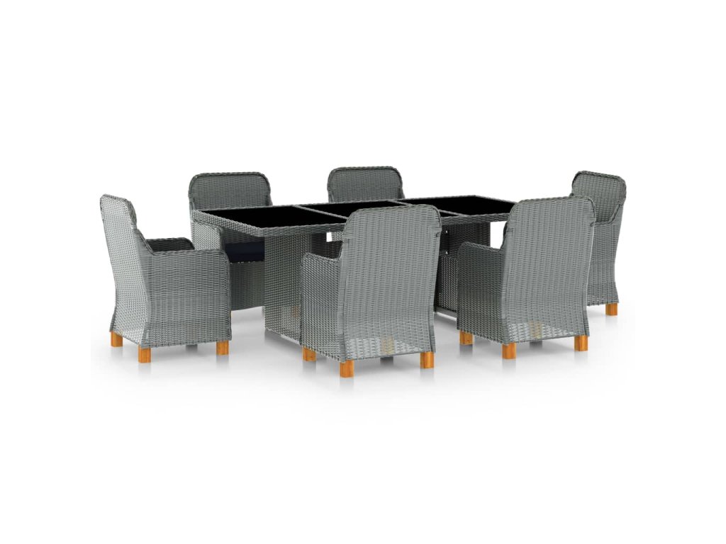 7dílný zahradní jídelní set s poduškami polyratan světle šedý 3060171