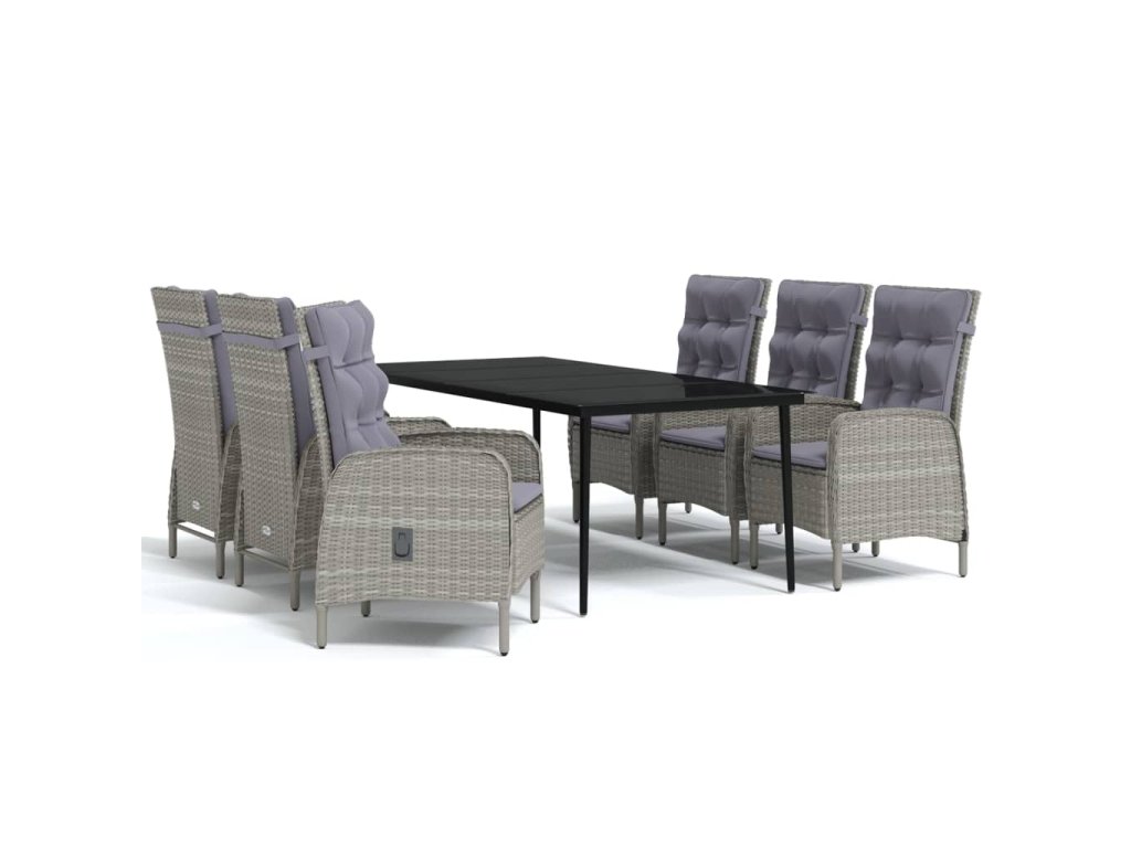 7dílný zahradní jídelní set s poduškami šedý a černý 3099375