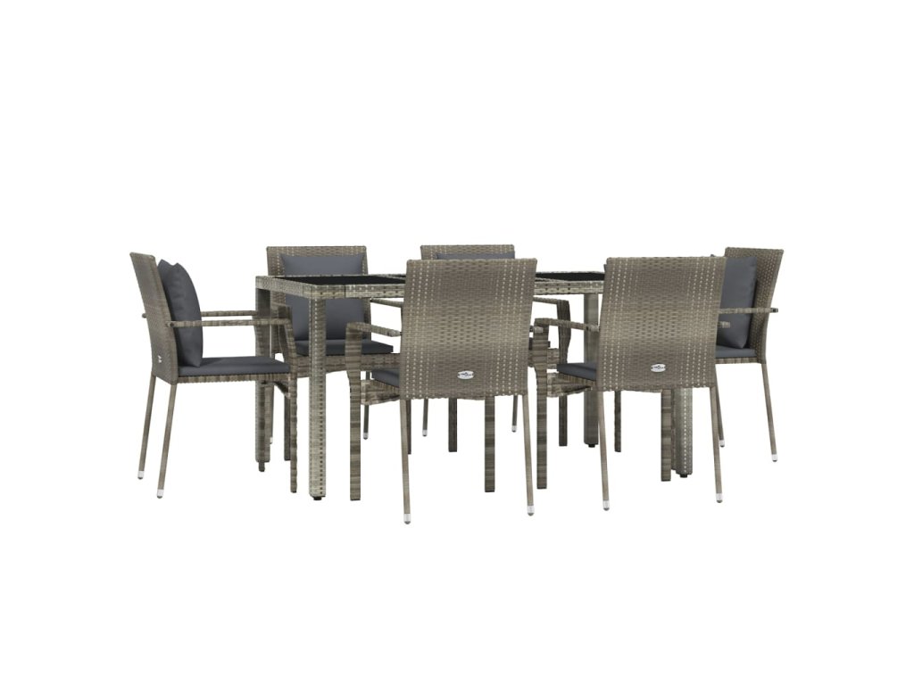 7dílný zahradní jídelní set s poduškami šedý polyratan 3157960