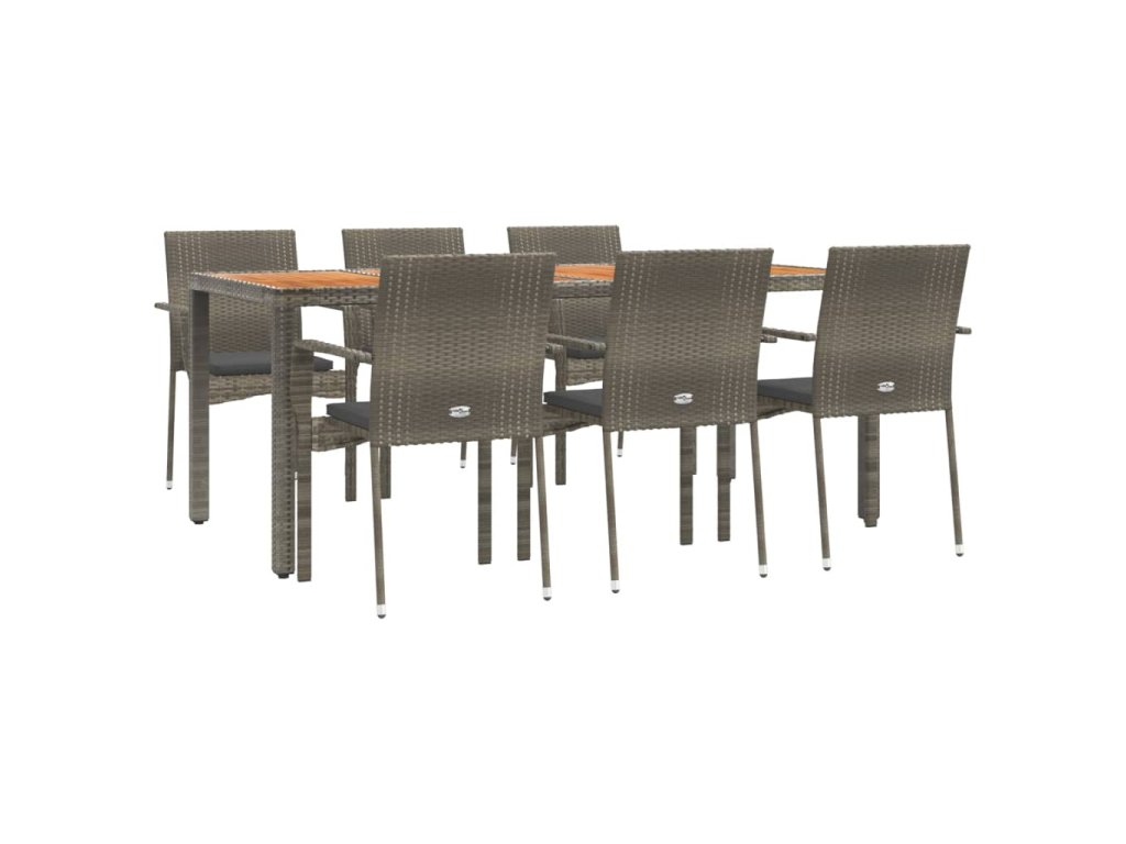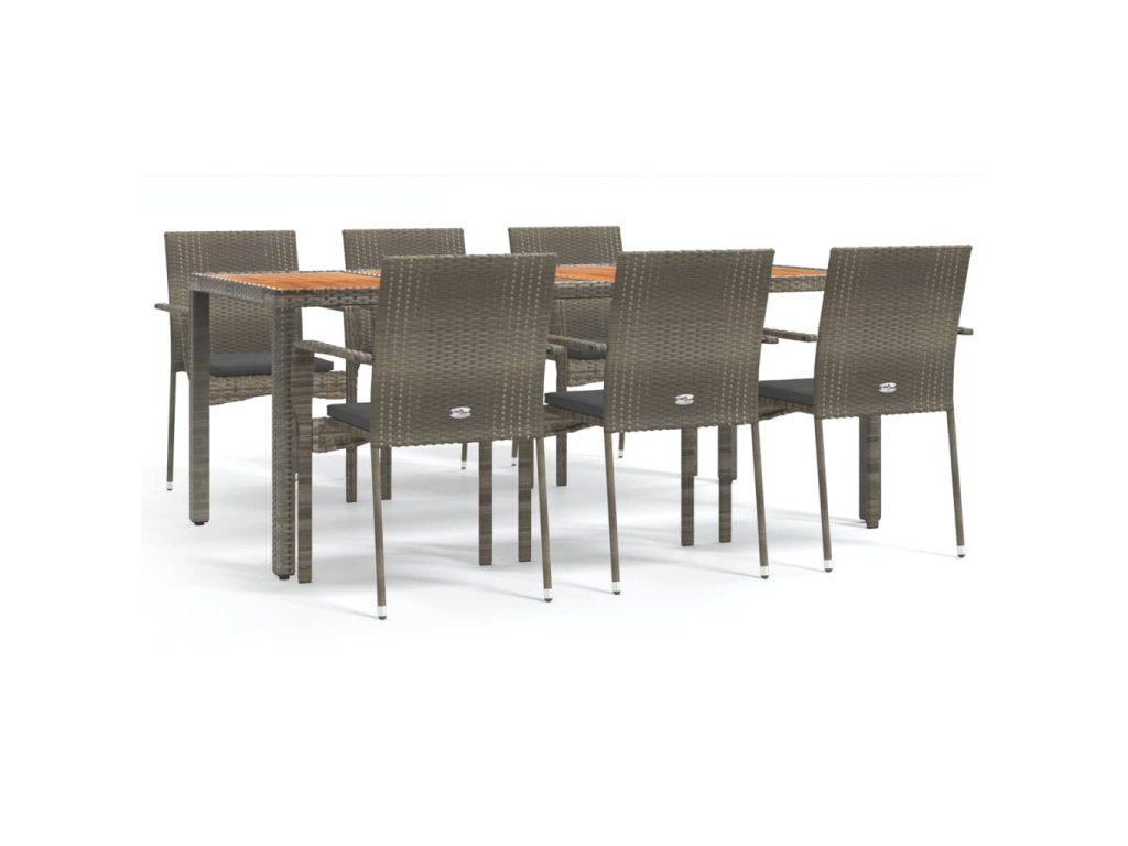 7dílný zahradní jídelní set s poduškami šedý polyratan 3184997