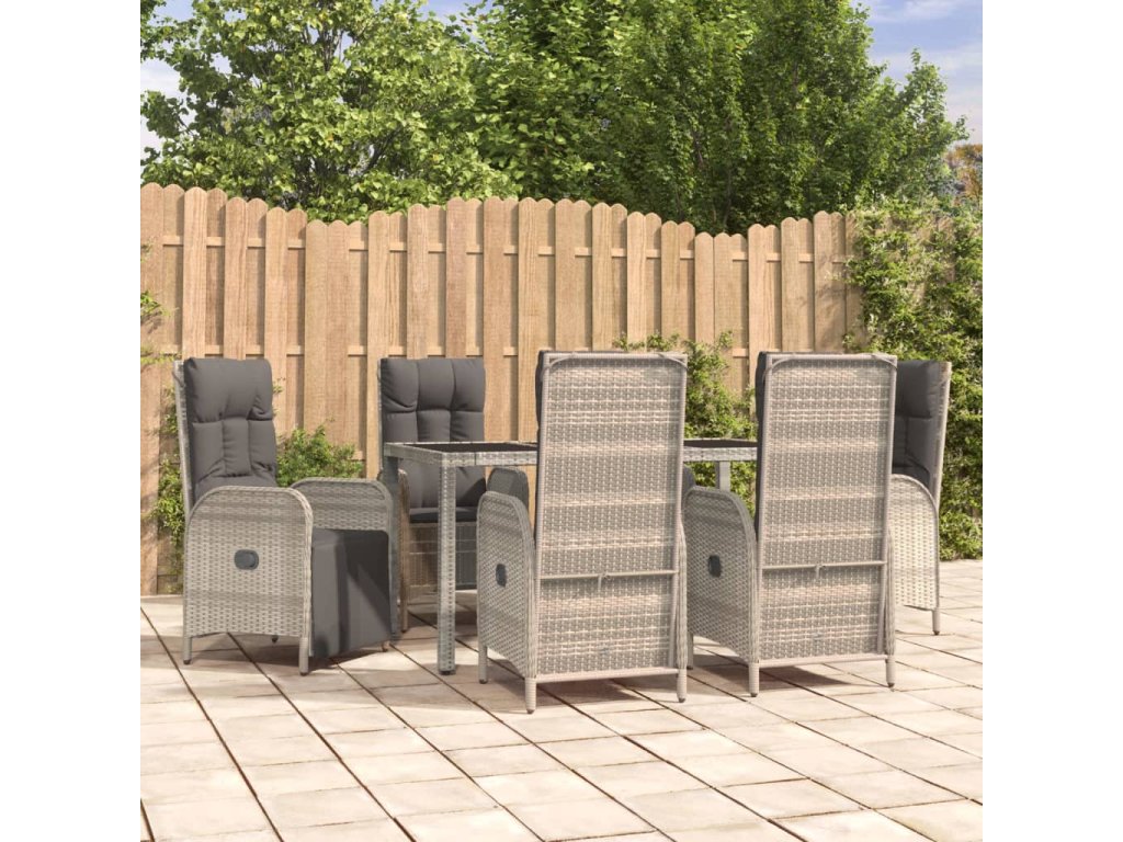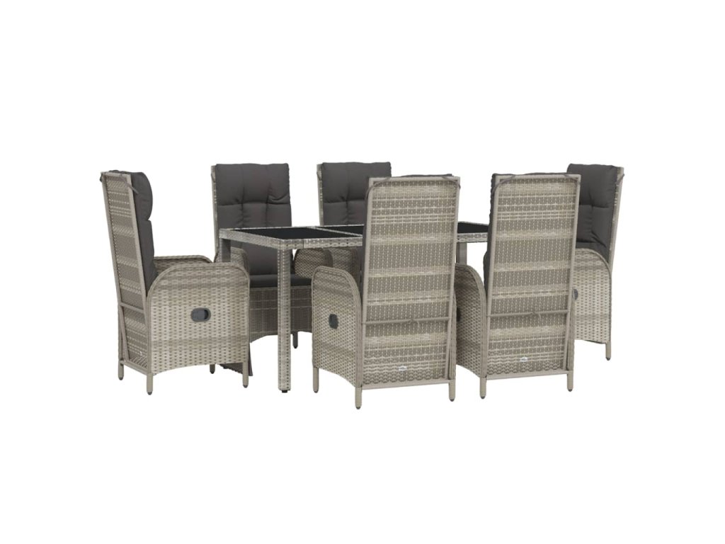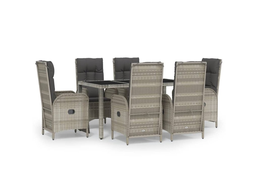 7dílný zahradní jídelní set s poduškami šedý polyratan 3185036