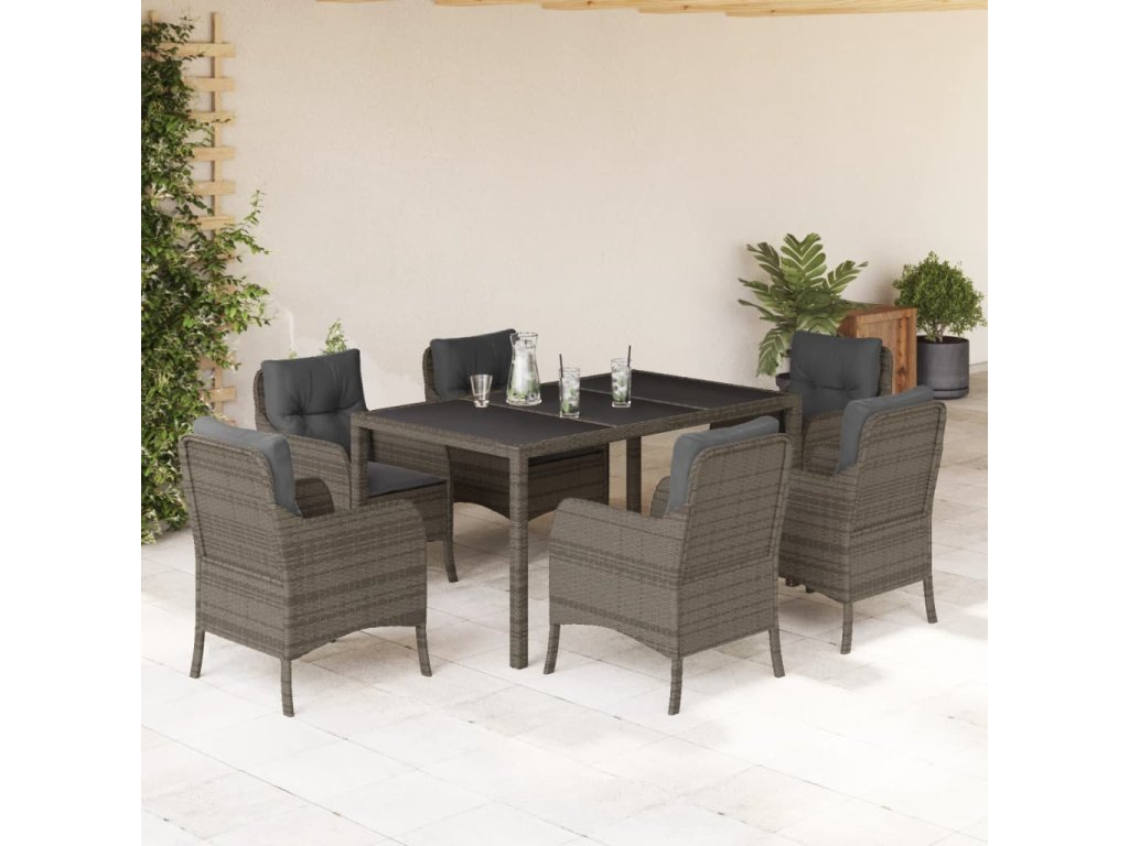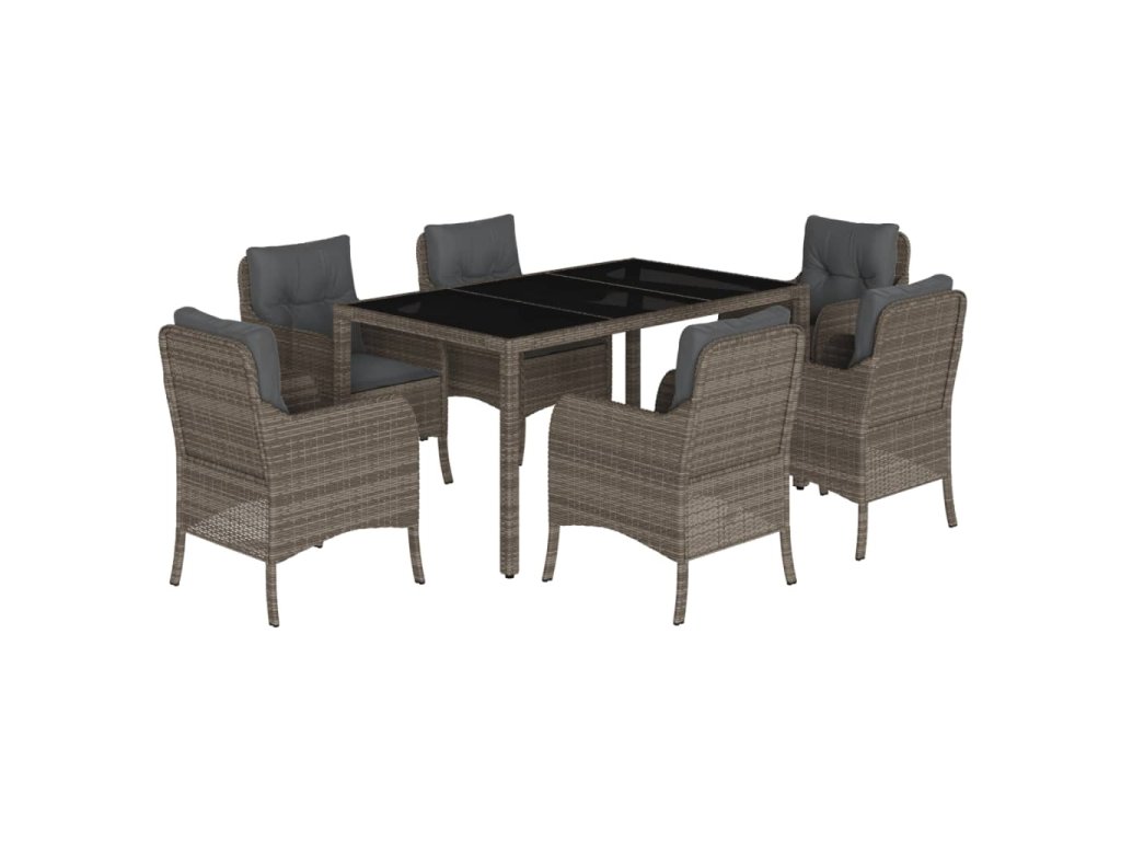 7dílný zahradní jídelní set s poduškami šedý polyratan 3211857