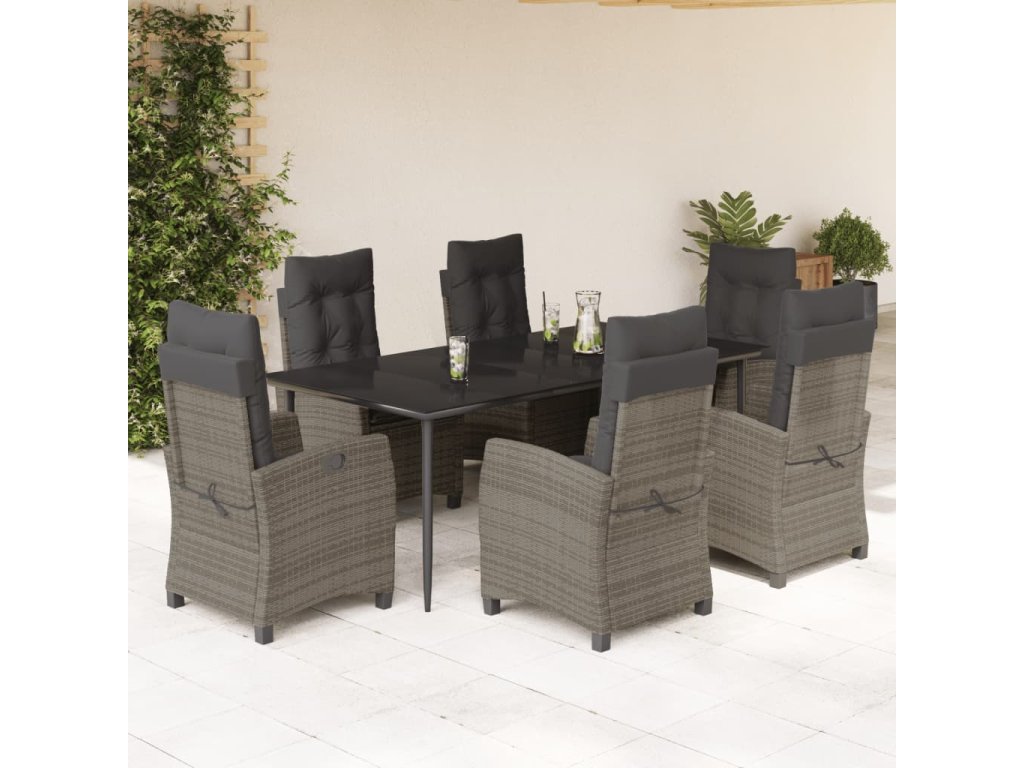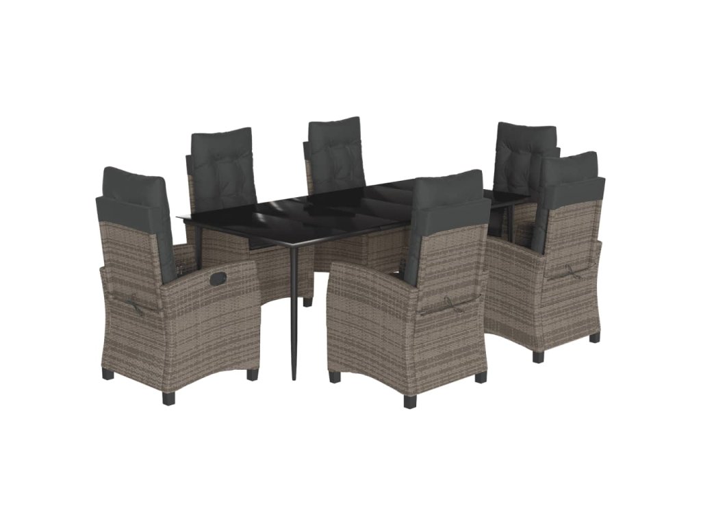 7dílný zahradní jídelní set s poduškami šedý polyratan 3212789