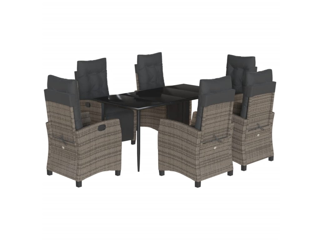 7dílný zahradní jídelní set s poduškami šedý polyratan 3212992
