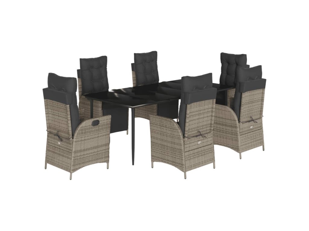 7dílný zahradní jídelní set s poduškami šedý polyratan 3213425